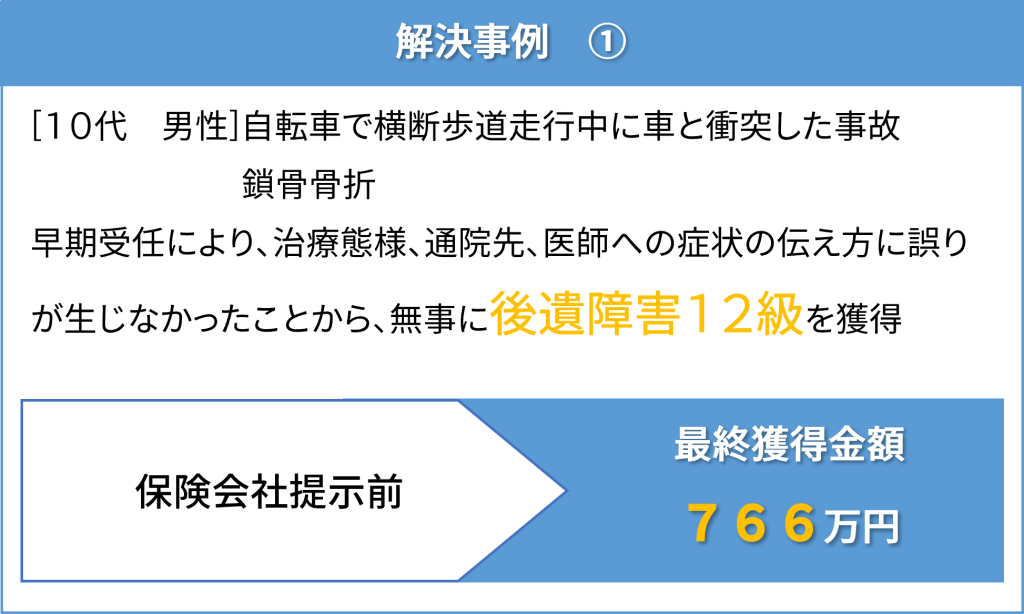 そうならないためにも、①事故直後に、②交通事故に精通した弁護士にご相談されることを強くお勧めします。