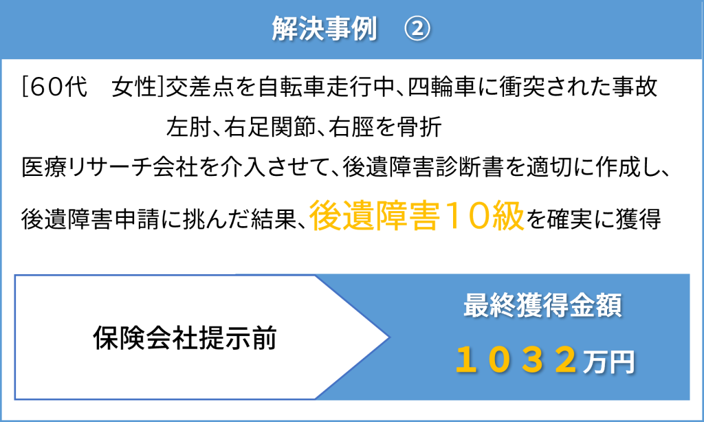 自転車運転中に事故に遭われた場合、ほとんど生身で衝撃を受けることになるため、怪我は重症化しやすく、後遺障害が残る可能性があります。